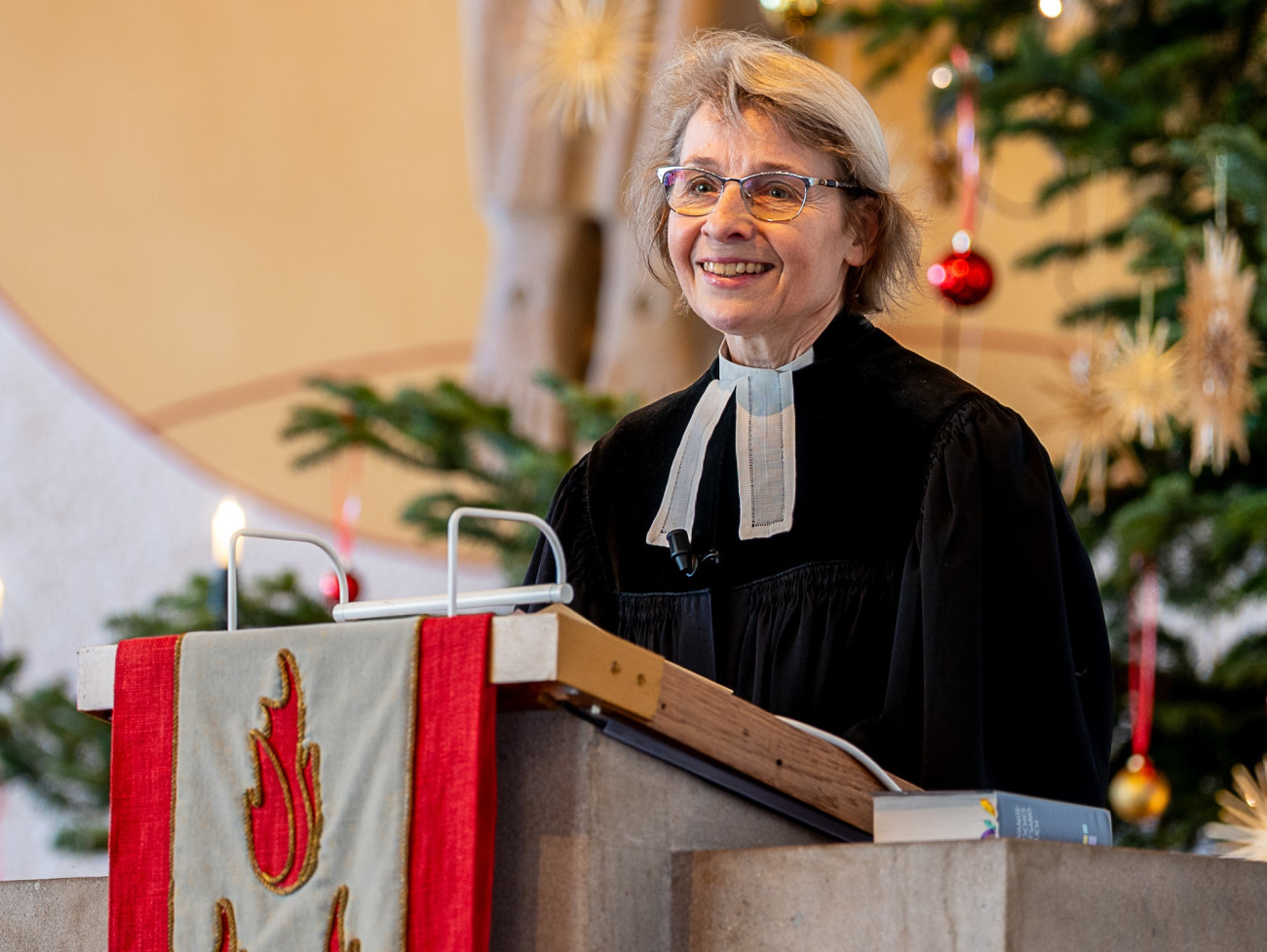 Dekan Jürgen Hacker würdigte in seiner Ansprache v.a. ihre Gabe als Seelsorgerin. „Deine seelsorgerlich-einfühlsamen Predigten werde nicht nur ich vermissen!“